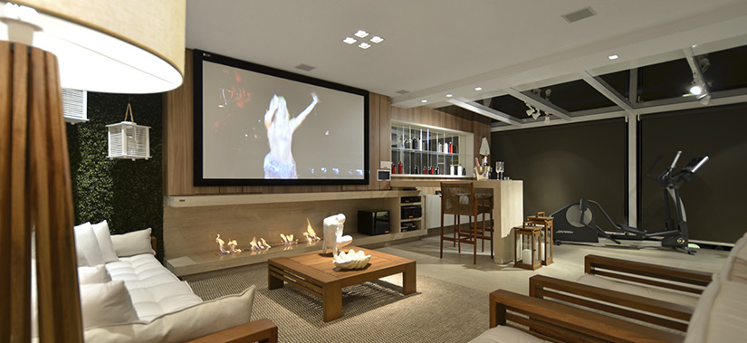 Esse tipo de lareira permite maior liberdade na disposição dos móveis — inclusive, possibilita a instalação da TV logo acima da estrutura.